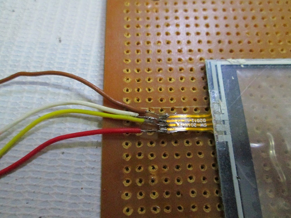 4. Then solder the wires one by one to the touch screen strip by putting the wire on the copper part of the strip (which has some solder now) and applying some heat gently using the solder iron.