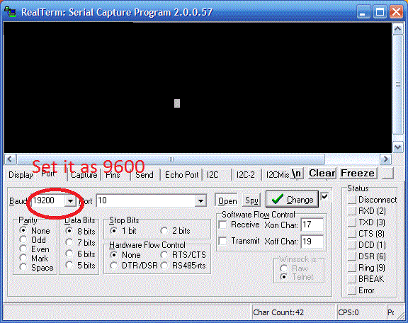 Open the Serial Port software. There would be many options and configuration settings. Don’t modify any of them unnecessarily. Just change the below given settings.