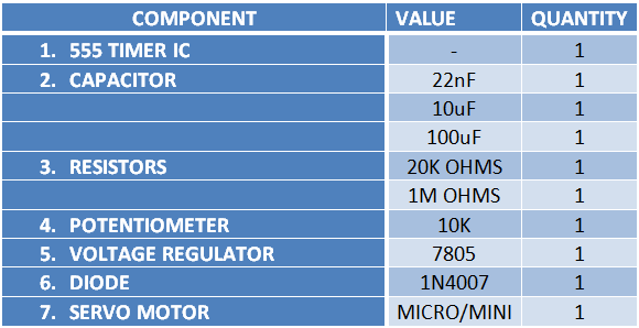The circuit uses a 555 Timer IC which is very cheap when compared to a microcontroller and also which doesn’t require programming. The 555 IC is configured in Astable Mode to generate the “Special Signal” for the servo motor to work. First let us understand that signal.