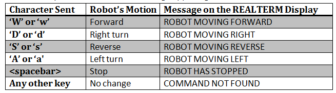 If it contains a <space> then set the output port such that both the motors stop.