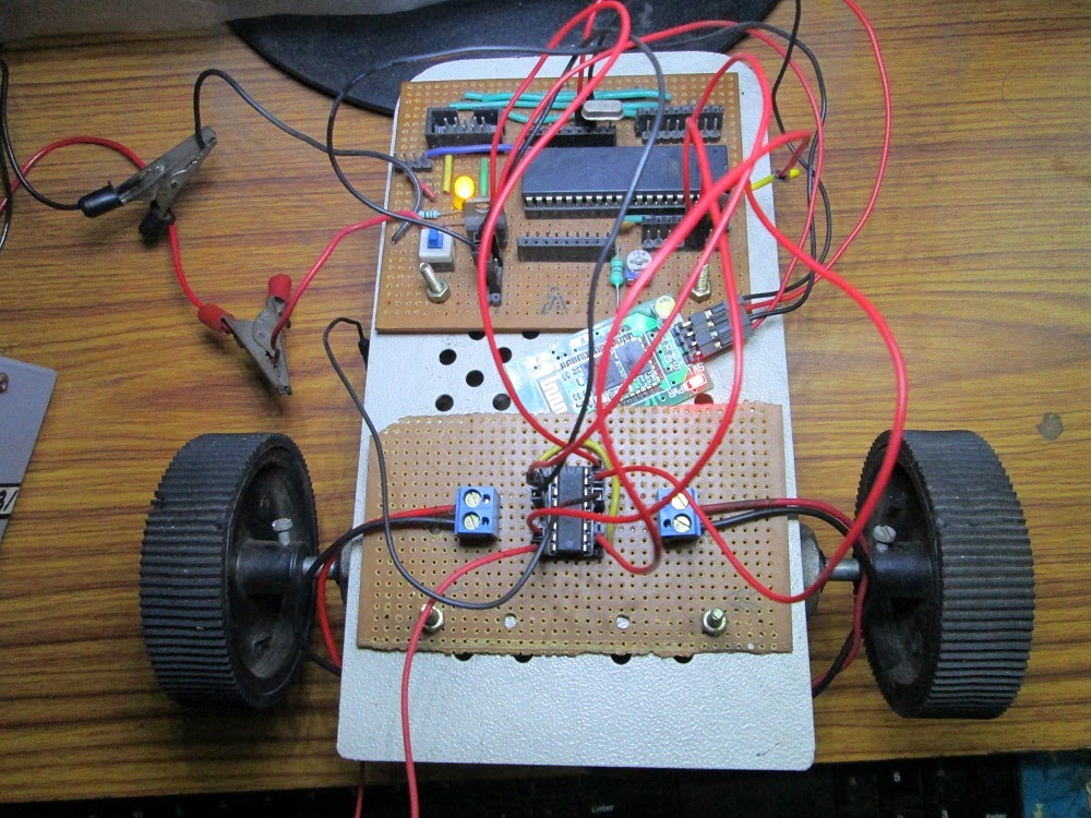 In the previous tutorial I have explained how to setup a basic serial connection between an Atmega16 controller Board and a computer/laptop. In this article we’ll learn how to control a robot using the computer/laptop wirelessly through Bluetooth.